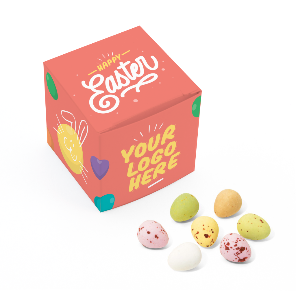 Our fully recyclable Eco Maxi Cube box is filled with Speckled Eggs and can feature your design on every surface of the packaging.